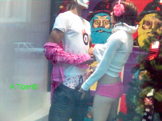 Annica Tiger hittade en något annorlunda julskyltning när hon var ute på stan häromdagen. Borde vara ett solklart fall för moralmaffian – killen har ju faktiskt byxorna på sig medan tjejen bara har trosor. Vad säger (kd)? ;) (Annica Tigers Blog. Bilden använd med tillstånd av Annica.)